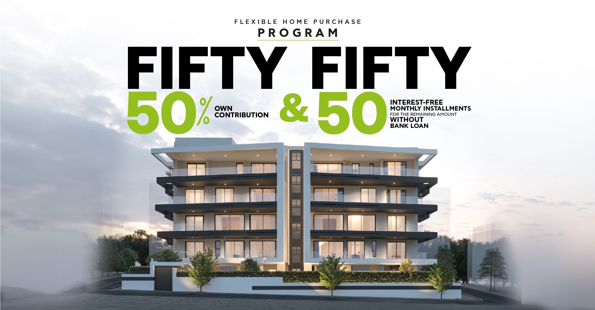 You can buy your home through the FIFTY FIFTY program by GREEN Properties, with the option to pay only 50% of its value upfront, without the need for a bank loan, and repay the remaining amount in 50 interest-free monthly installments.